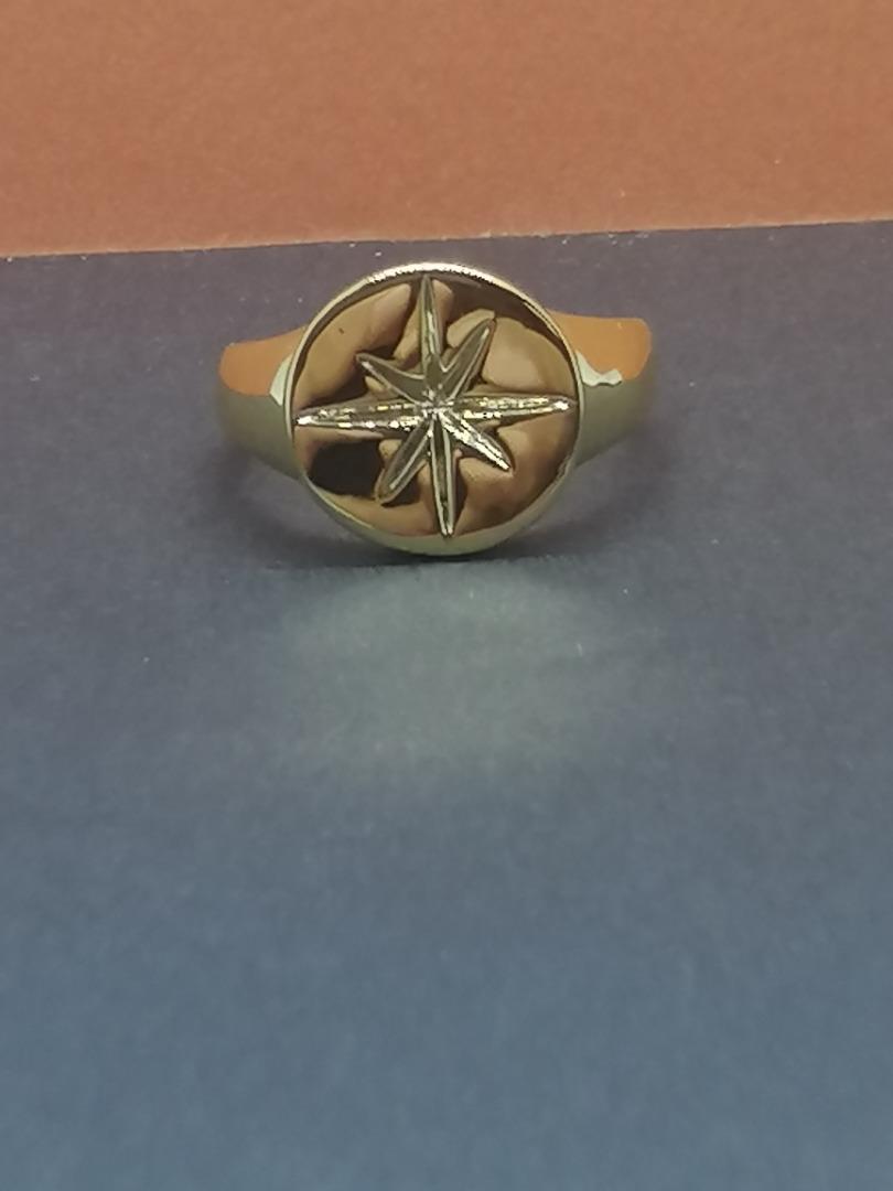 18k Solid heavy signet ring with Custom Northern Star w/Engraving