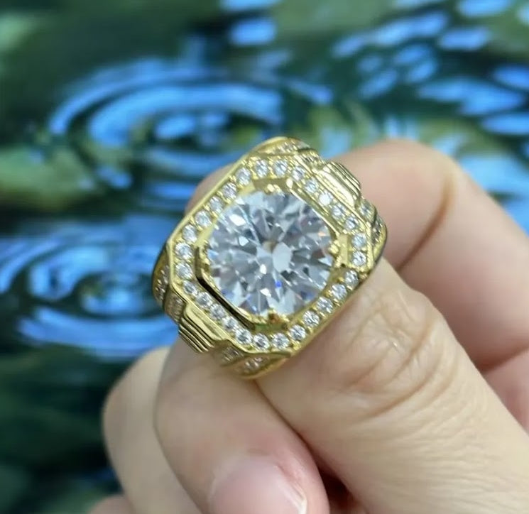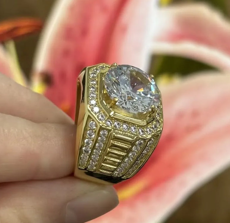 A bold yet refined engagement ring featuring a brilliant 5-carat round-cut white sapphire set in a sleek, masculine design. The sapphire’s exceptional sparkle captures the light beautifully, while its clean, timeless style makes it versatile for both formal occasions and everyday wear. Crafted with durability and sophistication in mind, this ring balances strength with elegance, a perfect choice for the modern man who appreciates understated luxury and lasting symbolism. A striking piece that celebrates love, commitment, and individuality with confidence and style.