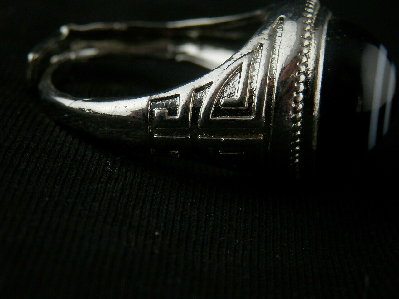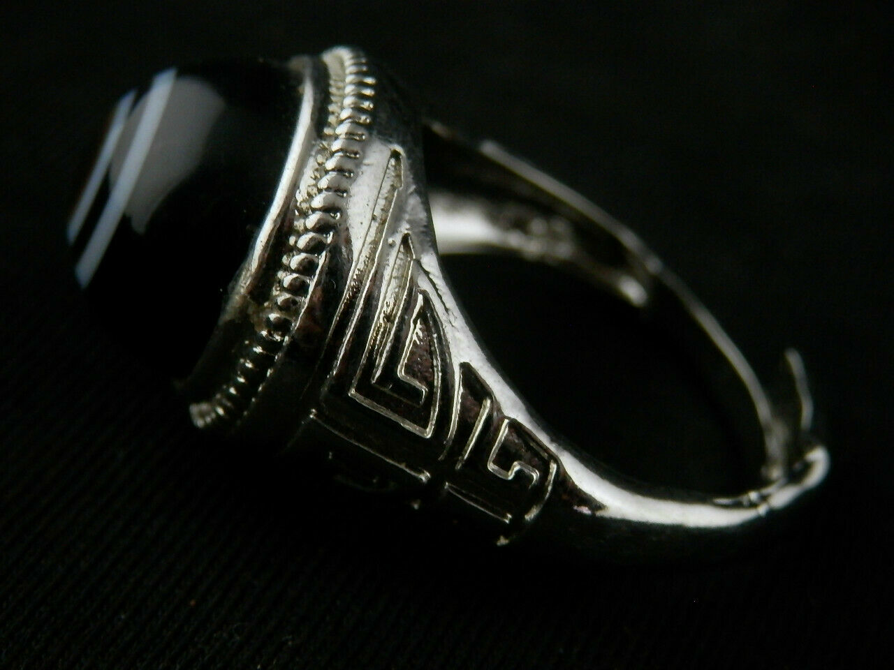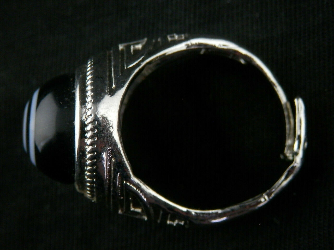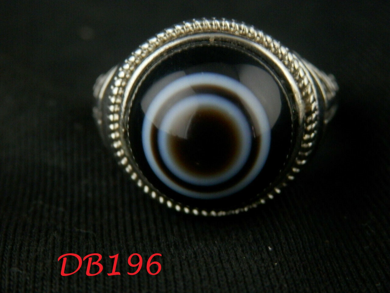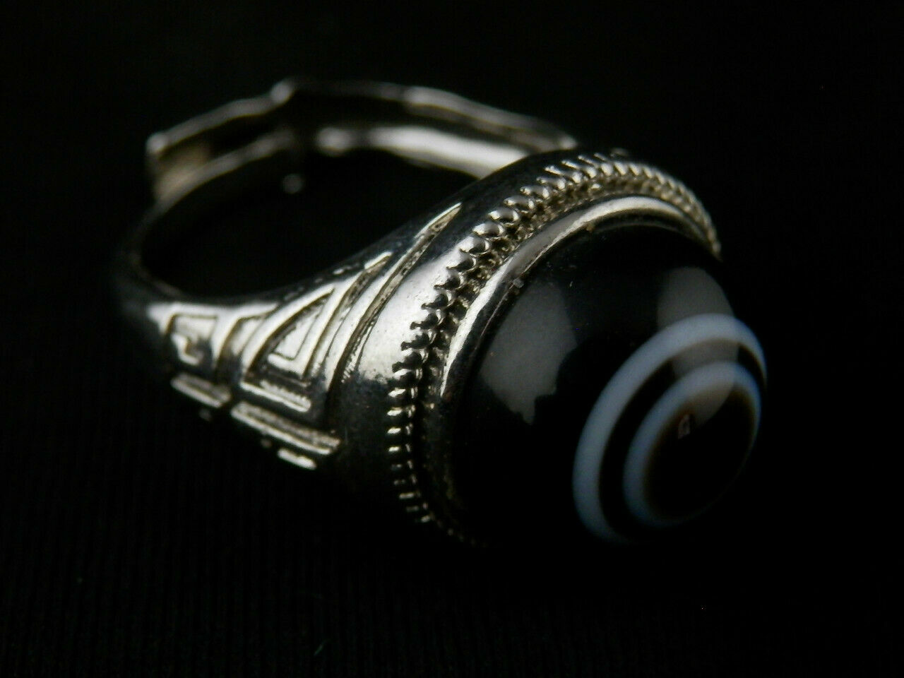 Authentic Natural Tibetan Silver Inlay Dzi Sky Eyed Bead Ring (SIZE 10.5)