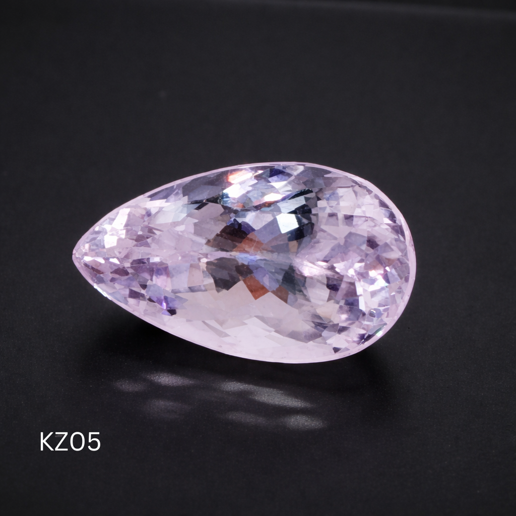 This exquisite pear-cut kunzite glows with a delicate blush-lavender hue, capturing light with remarkable brilliance and depth. Expertly faceted to enhance its natural clarity, the stone reveals soft flashes of pastel pink and silvery lilac from every angle. Its graceful silhouette and romantic color make it an ideal centerpiece for fine jewelry—especially statement rings or elegant pendants. A gemstone that embodies femininity, calm, and refined sophistication.