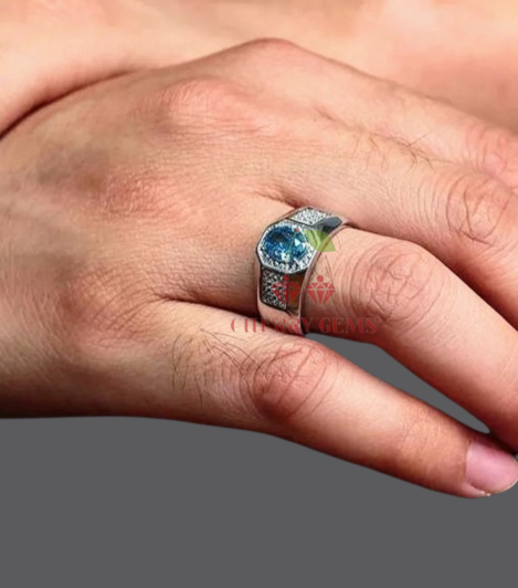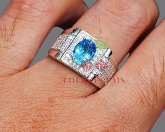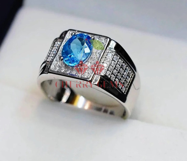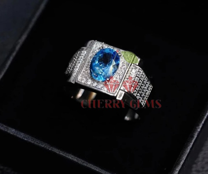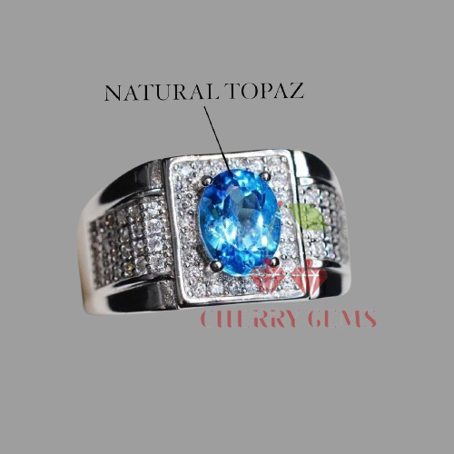 This marvelous ring showcases a breathtaking natural topaz, radiating a captivating azure hue that evokes the serene beauty of the sky. Surrounded by a dazzling halo of brilliant diamonds, the topaz centerpiece is flawlessly set in a meticulously crafted band. Perfect for those who appreciate fine craftsmanship and timeless design, this ring is a testament to sophistication and grace. Ideal for special occasions or as a statement piece, the Celestial Glow ring is sure to leave a lasting impression.