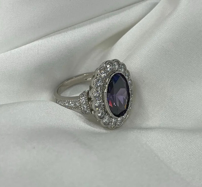 Charming 5 Carat Oval Halo Amethyst Sapphire Engagement Ring