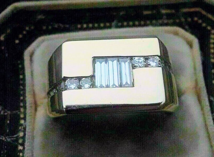 Geometric Elegance: Men's Gold Ring with Diamond Accents