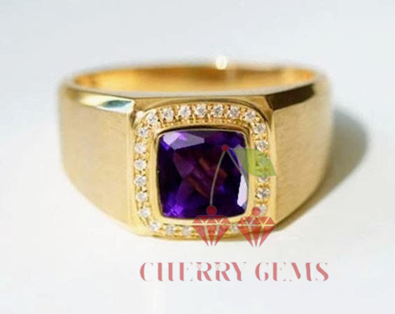 Introducing the Men's Classic Plus, a remarkable ring featuring a natural purple amethyst set in luxurious 18k gold-plated 925 sterling silver. The radiant amethyst is framed by a halo of sparkling stones, creating an exquisite and elegant appearance. This ring is finished with a white rhodium coating, enhancing its brilliance and durability. Ideal for any special occasion or everyday wear, this piece exudes sophistication and timeless charm.ย Elevate your collection with this stunning, finely crafted ring.