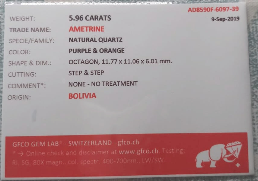 Natural Certified Ametrine: Harmonic Hueflow 5.96cts- AMET33 (24)