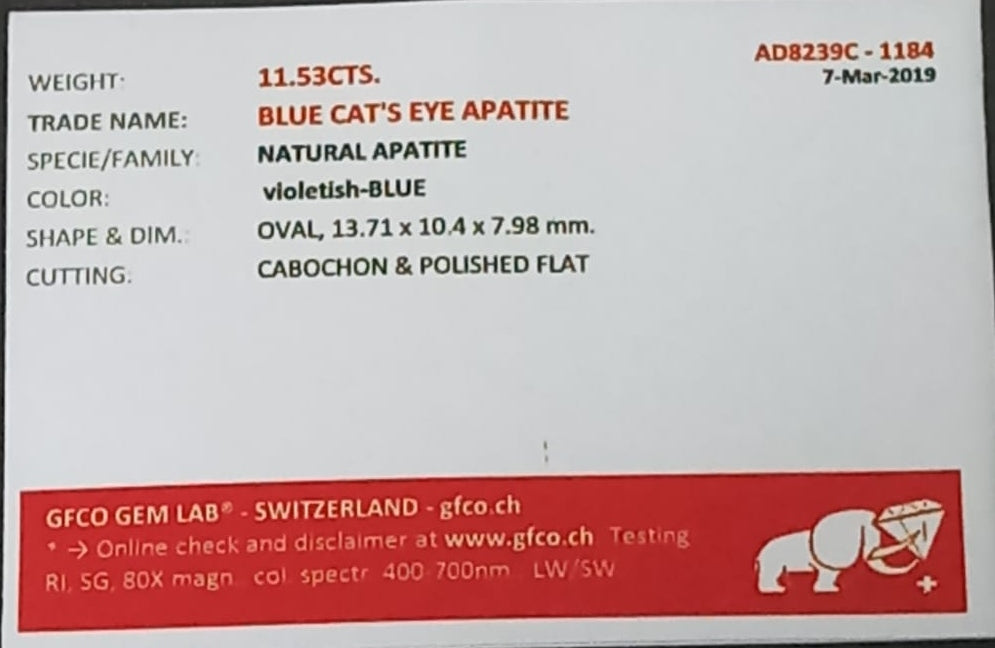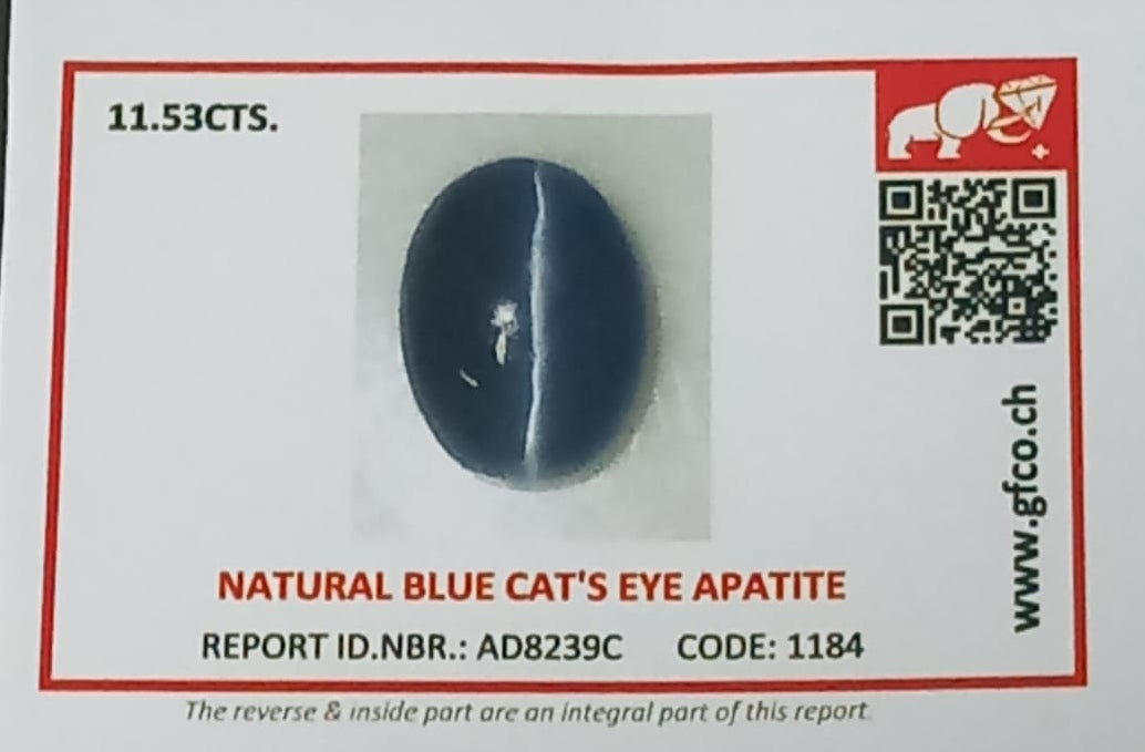 Natural Certified Apatite Catseye 11.53cts- AC45 (24)