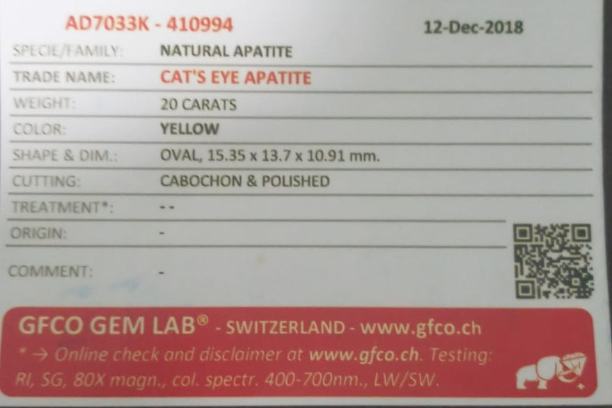 Natural Certified Apatite Catseye 20cts- HAC10 (24)