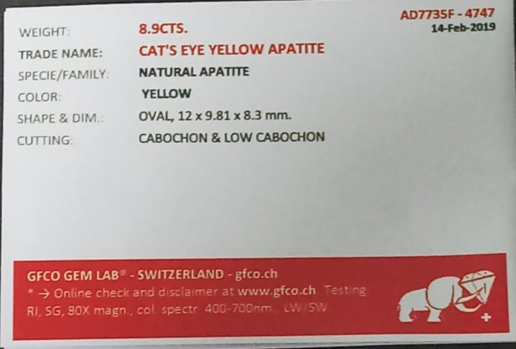 Natural Certified Apatite Catseye 8.9cts- AP20 (24)