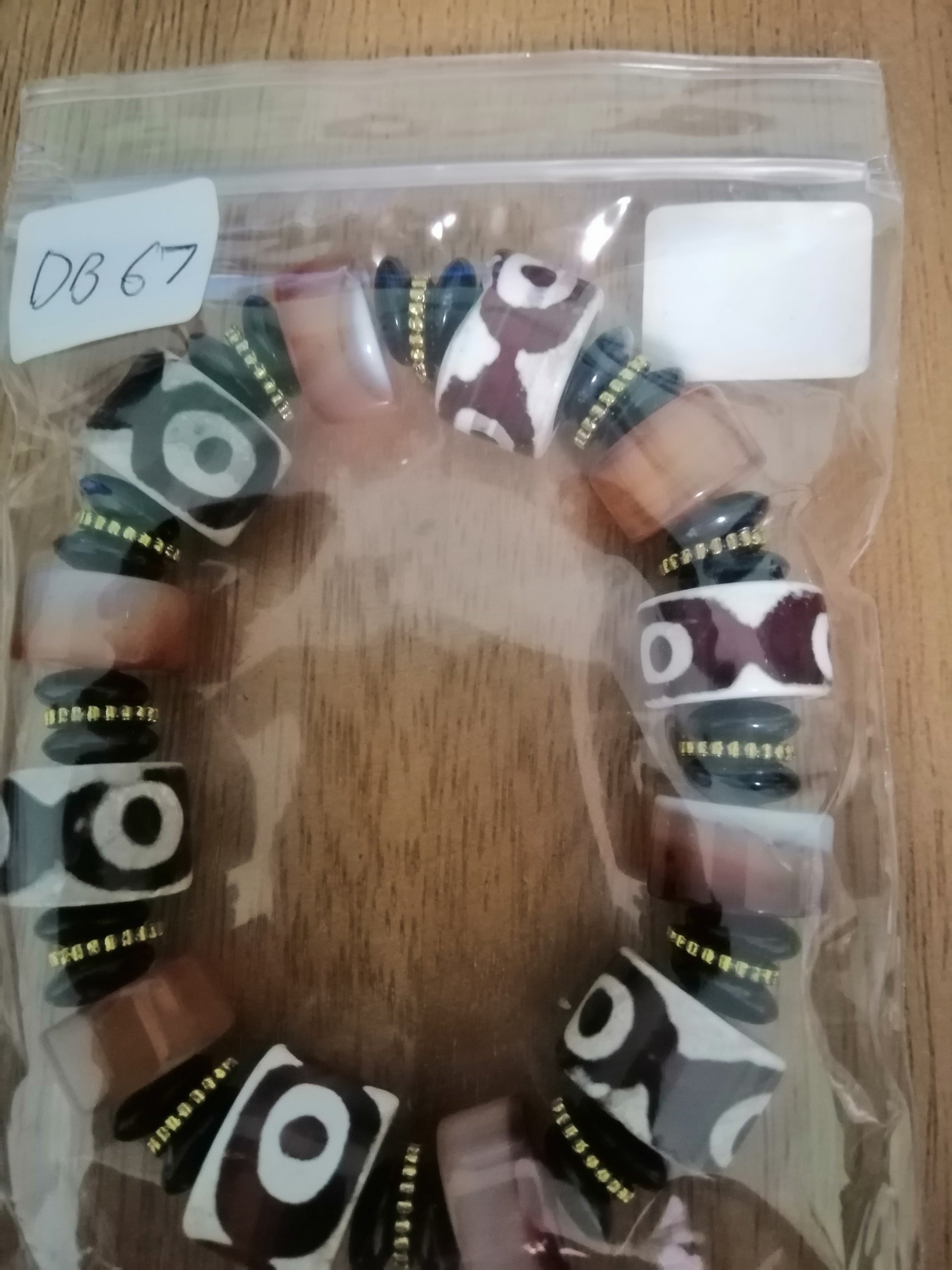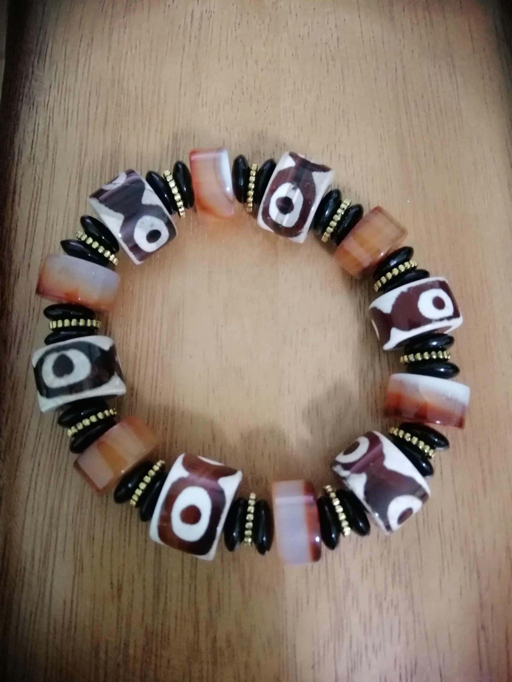 Dzi bracelets are made from agate and are traditionally worn as charms or accessories in Tibetan and Himalayan cultures. These bracelets have cultural and symbolic significance, representing various spiritual beliefs and traditions. Dzi bracelets are adorned with decorative symbols that can include circles, ovals, squares, waves or zig zags, stripes, lines, diamonds, dots, and other archetypal patterns. These bracelets can be worn on the wrist as a bracelet, as a pendant on a necklace, or carried as a keychain or in a wallet. They are often cherished for their unique patterns, craftsmanship, and cultural significance. Many people simply wear dzi bracelets for their aesthetic appeal and as a way to connect with the rich heritage and symbolism they represent.