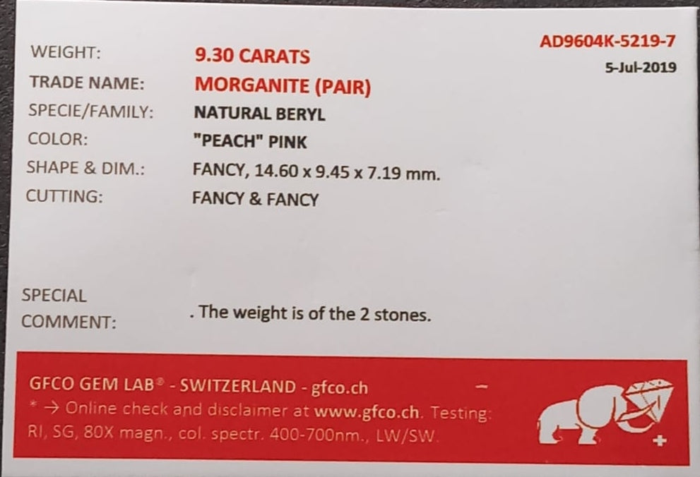 Natural Pair Morganite: Peach Harmony 9.30cts- MORG1 (24)