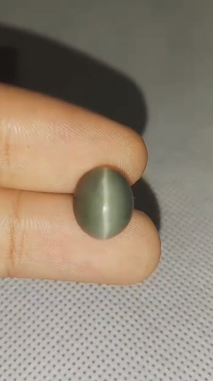 One interesting fact about Quartz Cat's Eye is that it exhibits a unique optical phenomenon known as chatoyancy, which creates a luminous band of light that appears to move across the surface of the stone when it is moved or rotated. This effect is caused by the presence of microscopic inclusions, fibers, or tubes within the quartz crystal structure, which reflect light in a concentrated line, resembling the slit pupil of a cat's eye.