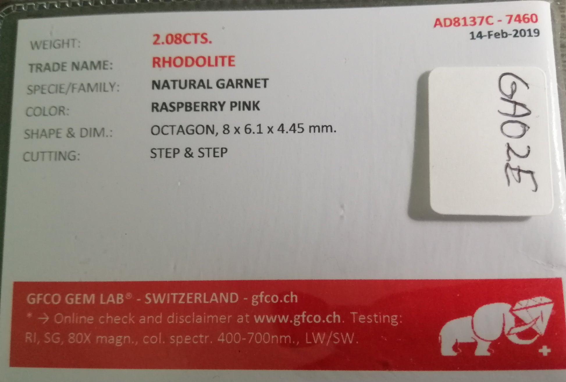 Natural Swiss Lab Certified Garnet: Sparkling Pink 2.08ct- GA02E (24)