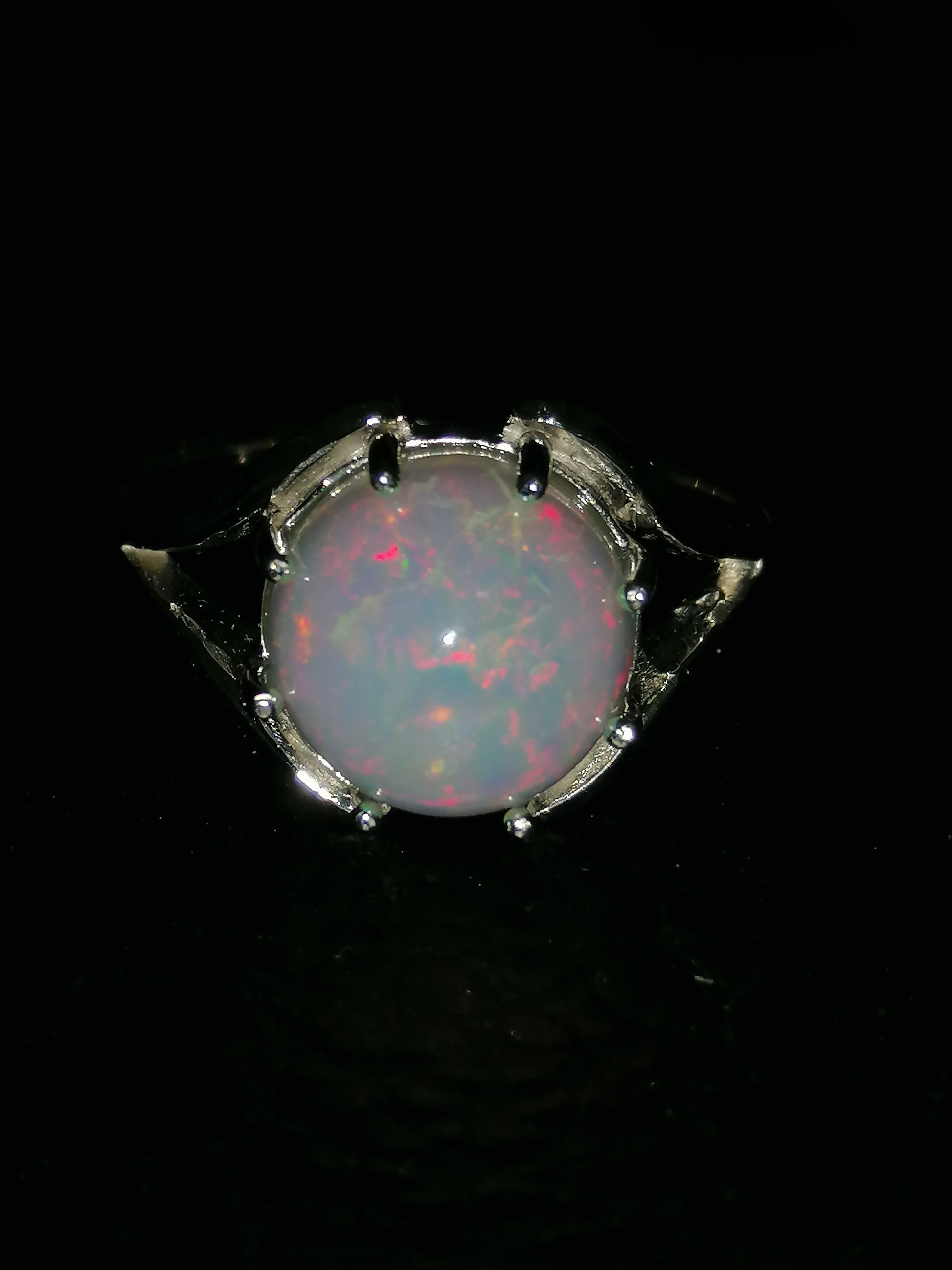 White opals are renowned for their mesmerizing play-of-color. This captivating effect occurs due to the diffraction of light through microscopic silica spheres within the opal, creating a stunning display of shifting colors.