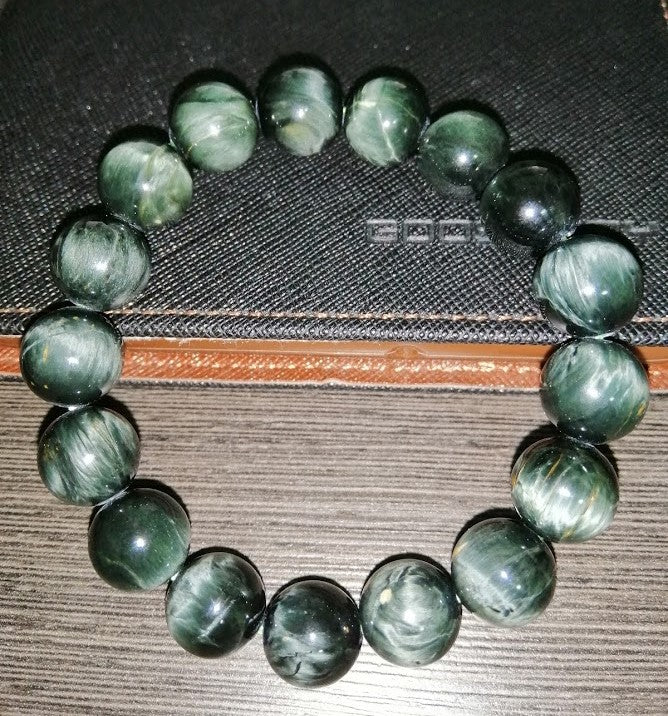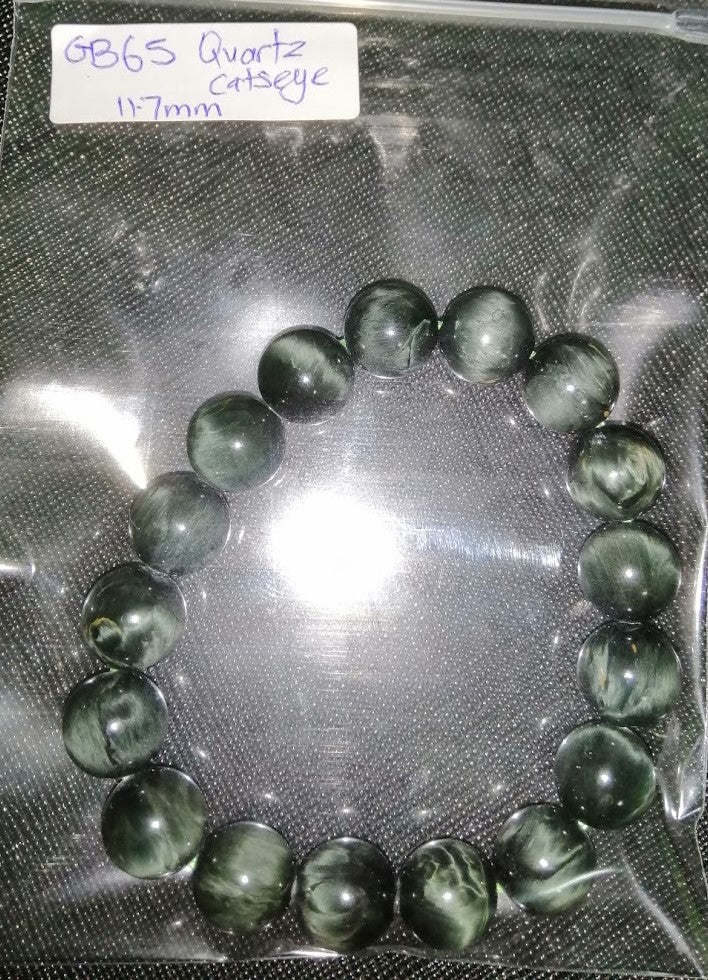 A quartz cat's eye bracelet is a piece of jewelry made from a variety of quartz known as cat's eye quartz or simply cat's eye. Cat's eye quartz is characterized by its chatoyancy, a unique optical effect that creates a narrow, luminous band resembling a cat's eye when light is reflected off the surface of the stone. This effect is caused by the presence of fine needle-like inclusions within the quartz.