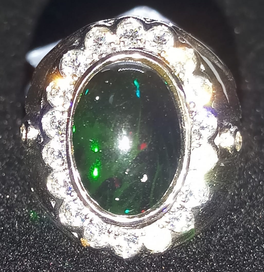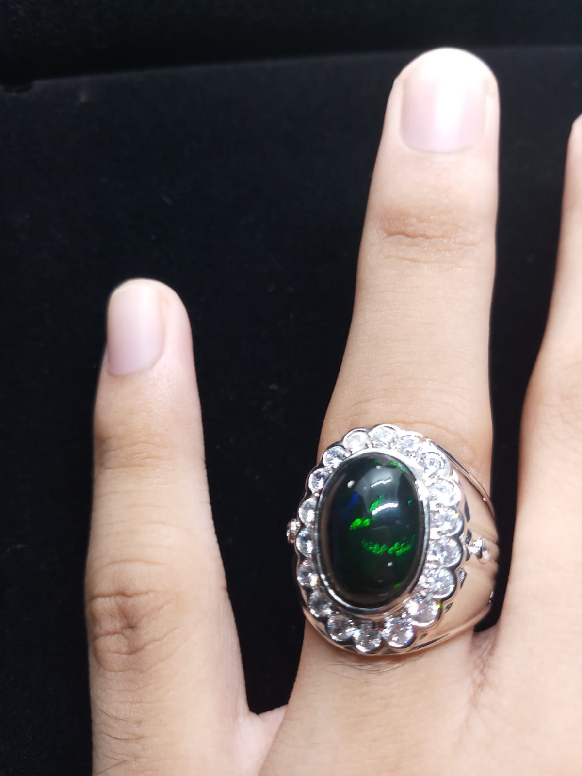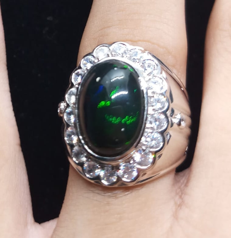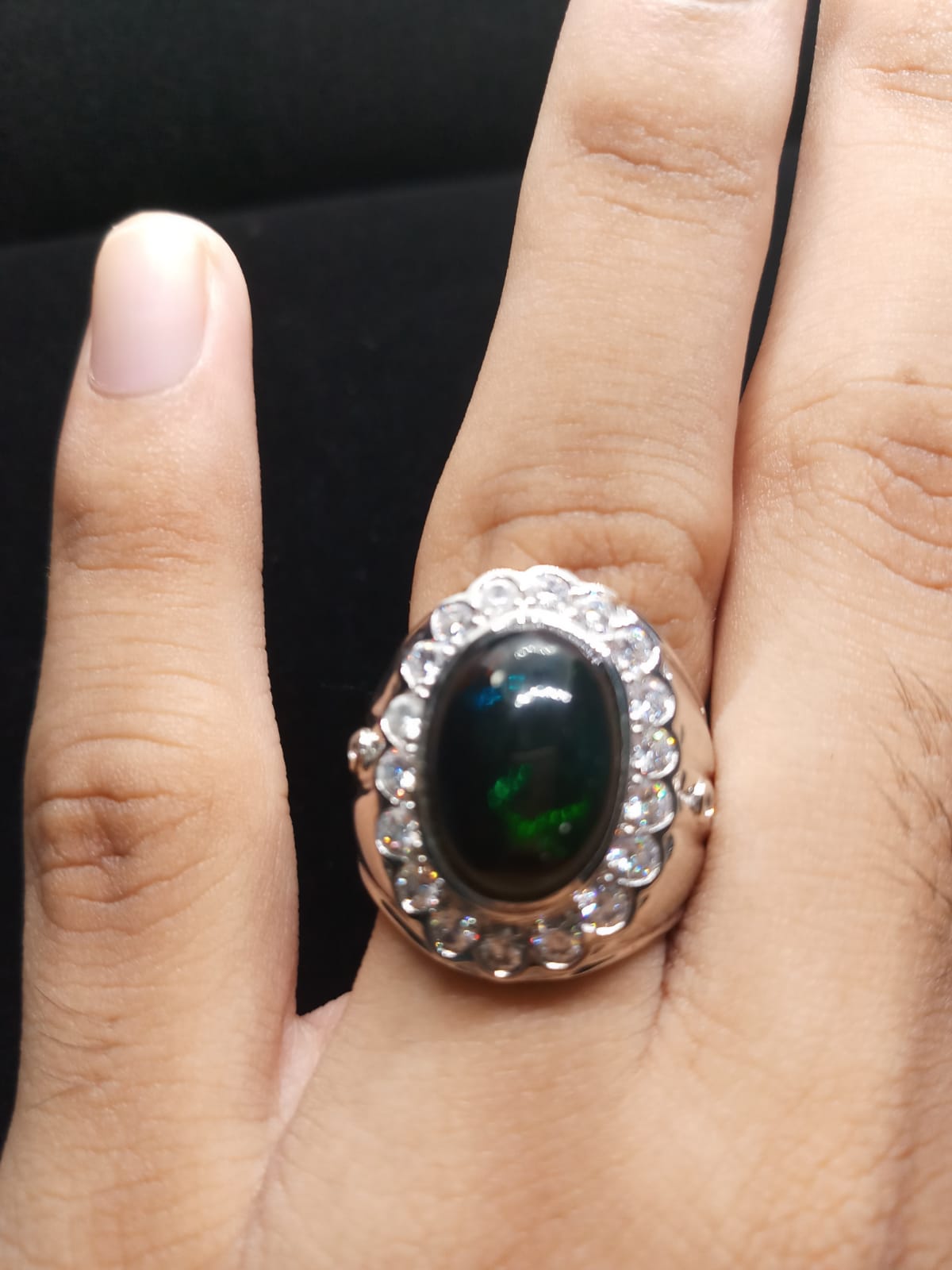 Natural SWISS LAB CERTIFIED RING with Black Opal (SIZE 10) SR84