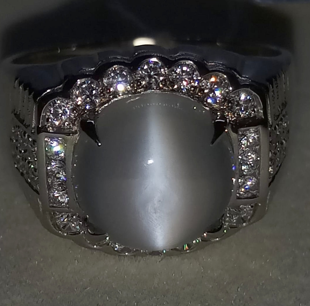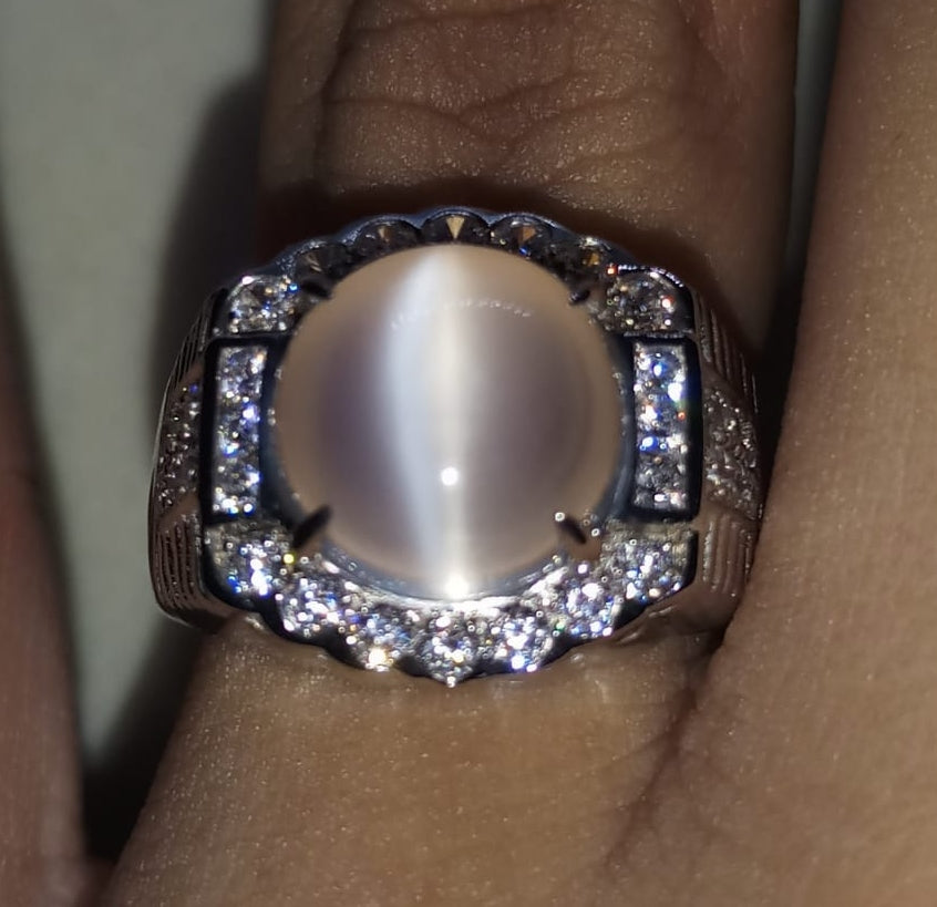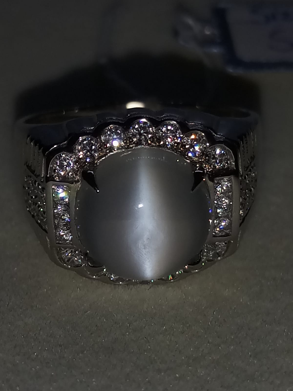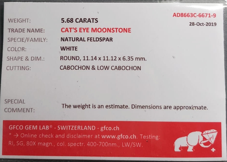 Natural SWISS LAB CERTIFIED RING with Cats Eye Moonstone (SIZE 10.5) SR71