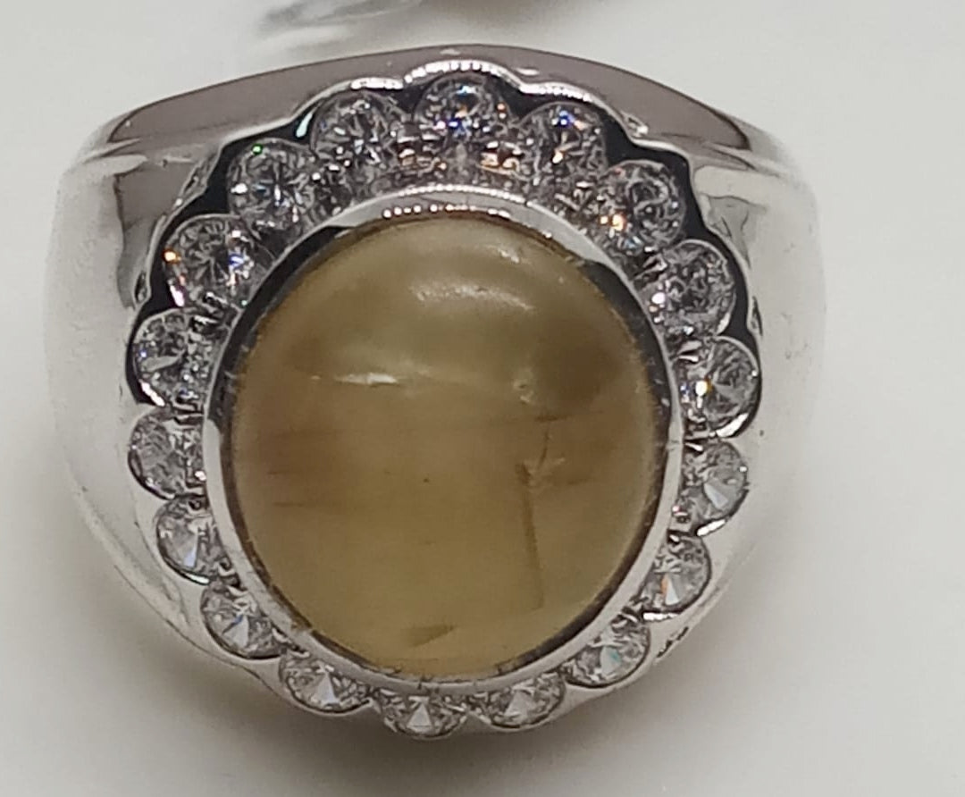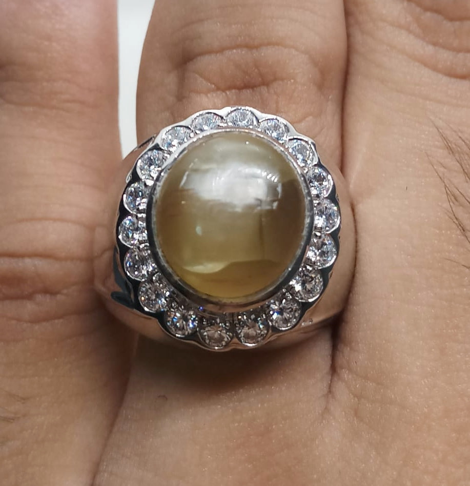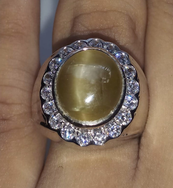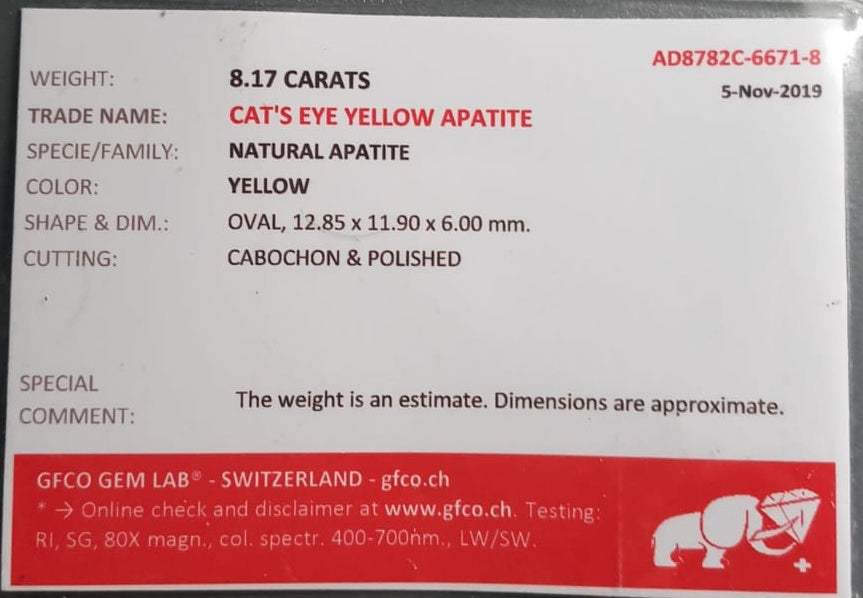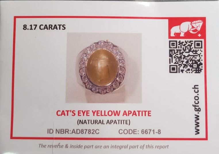 Natural SWISS LAB CERTIFIED RING with Cats Eye Yellow Apatite (SIZE 10) SR73
