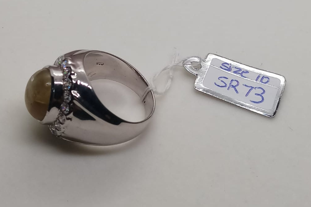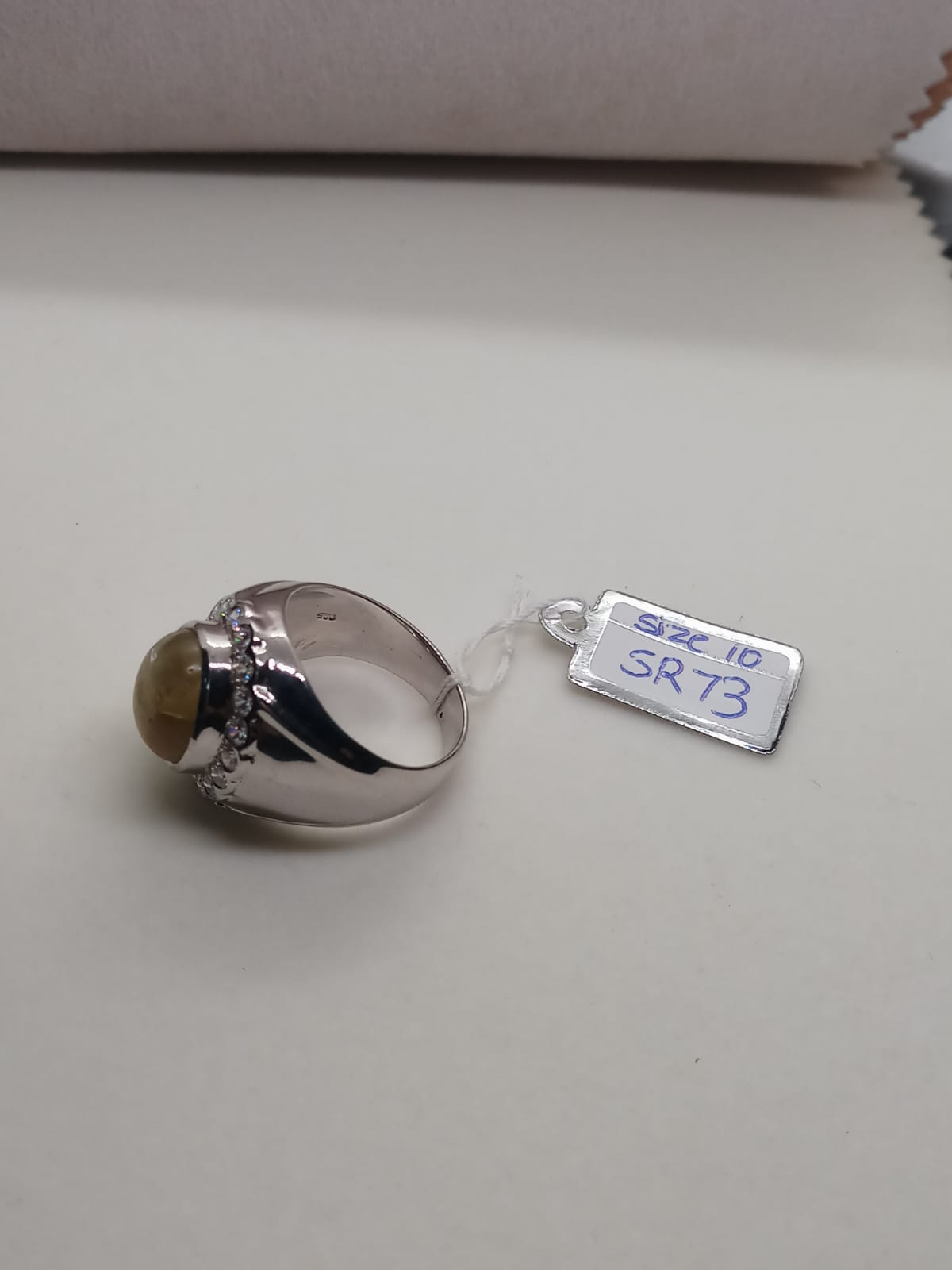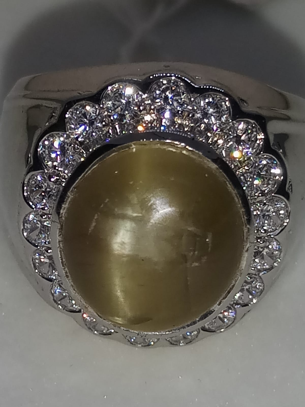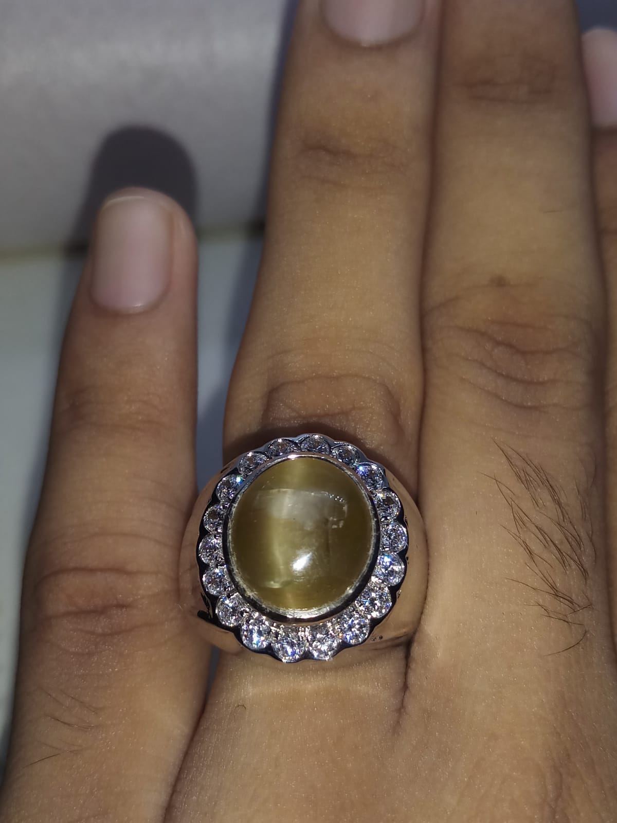 Natural SWISS LAB CERTIFIED RING with Cats Eye Yellow Apatite (SIZE 10) SR73