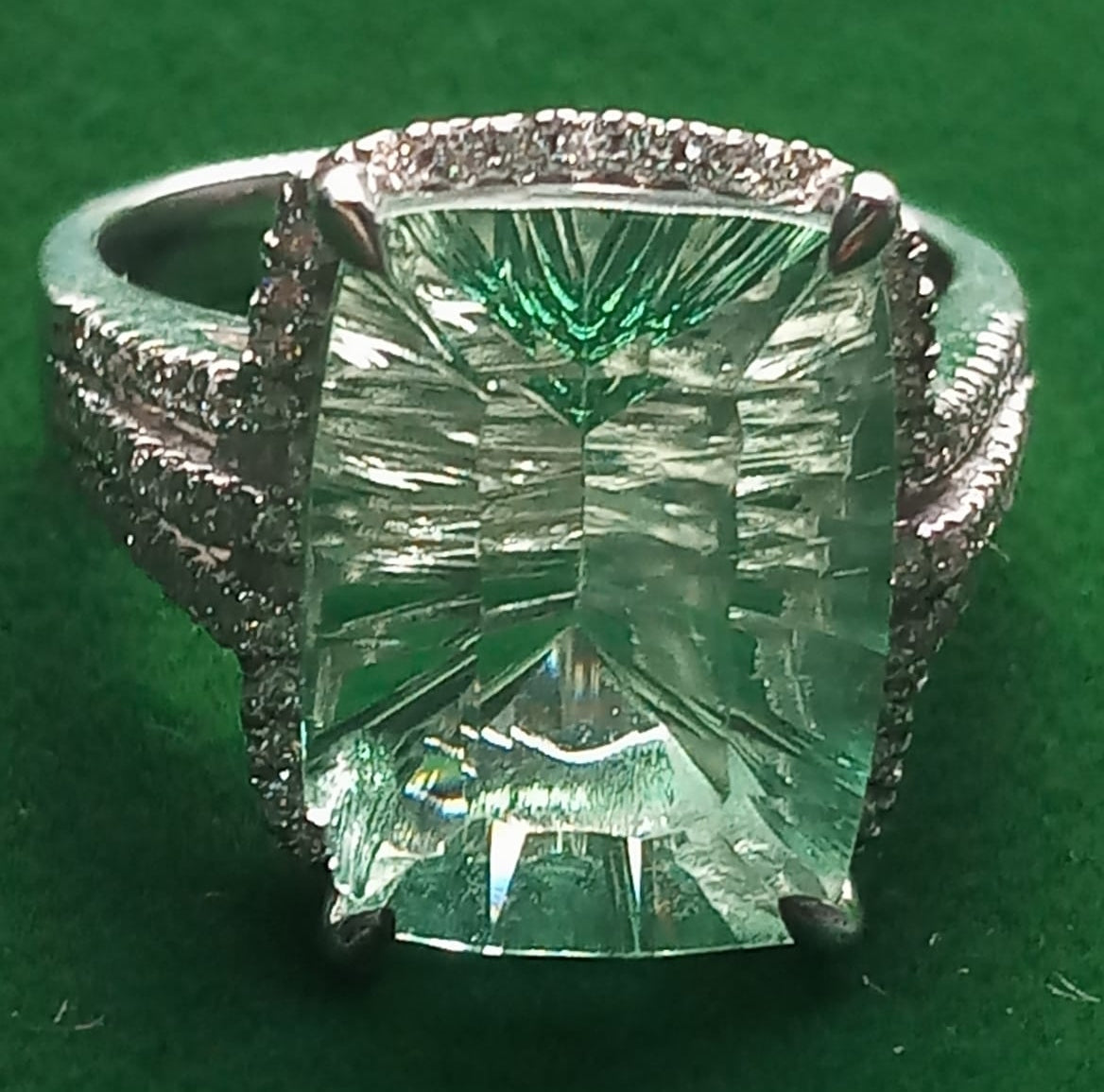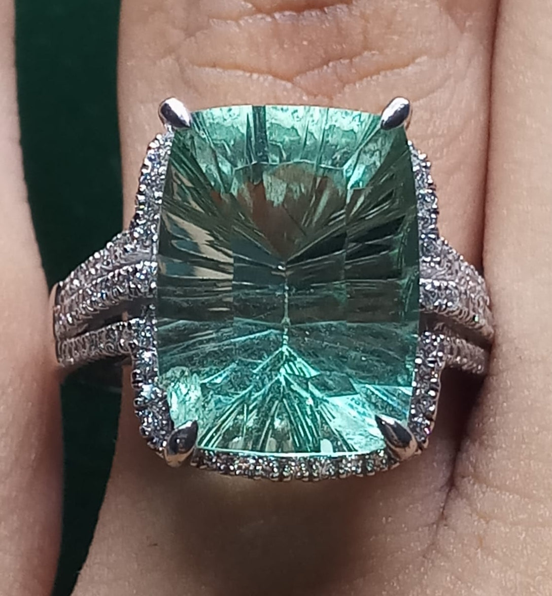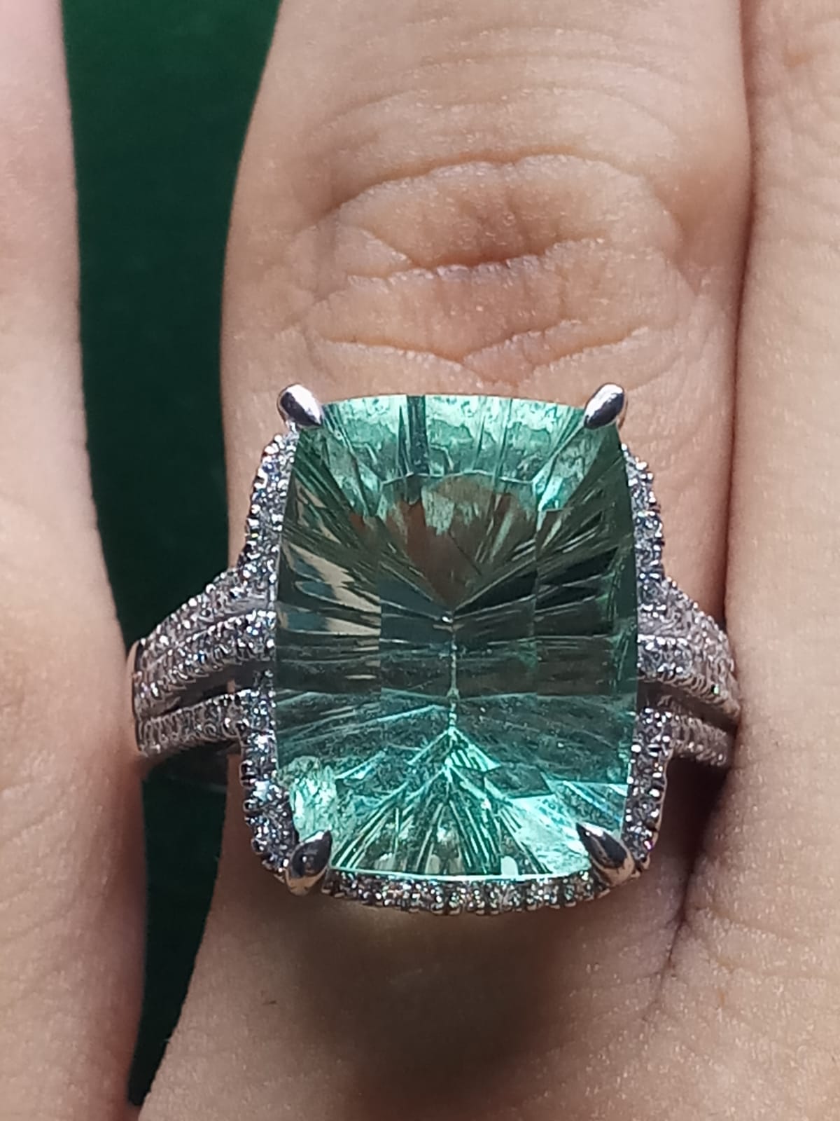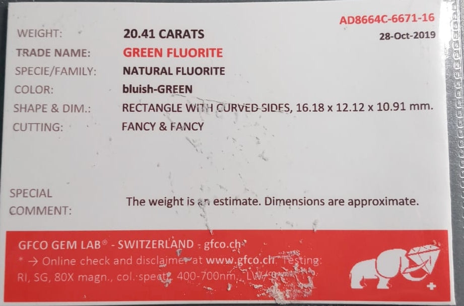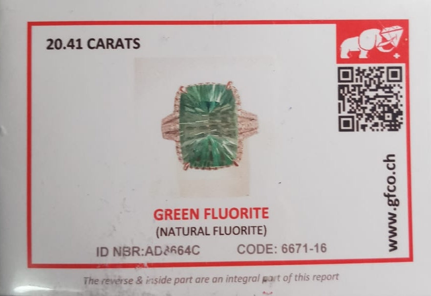 Natural SWISS LAB CERTIFIED RING with Green Fluorite (SIZE 10) SR76