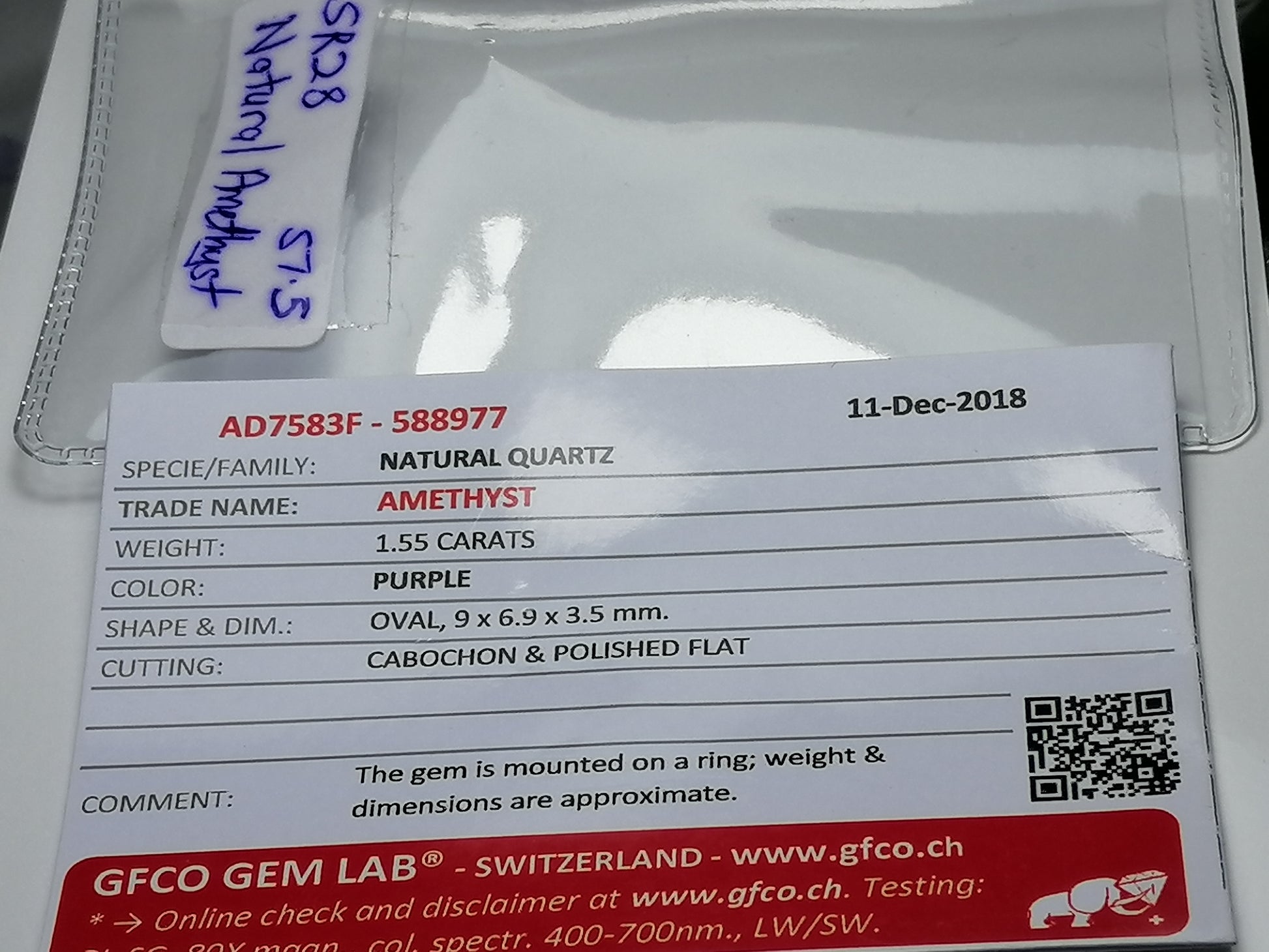 Natural Swiss Lab Certified Amethyst (SIZE 6.5) SR28