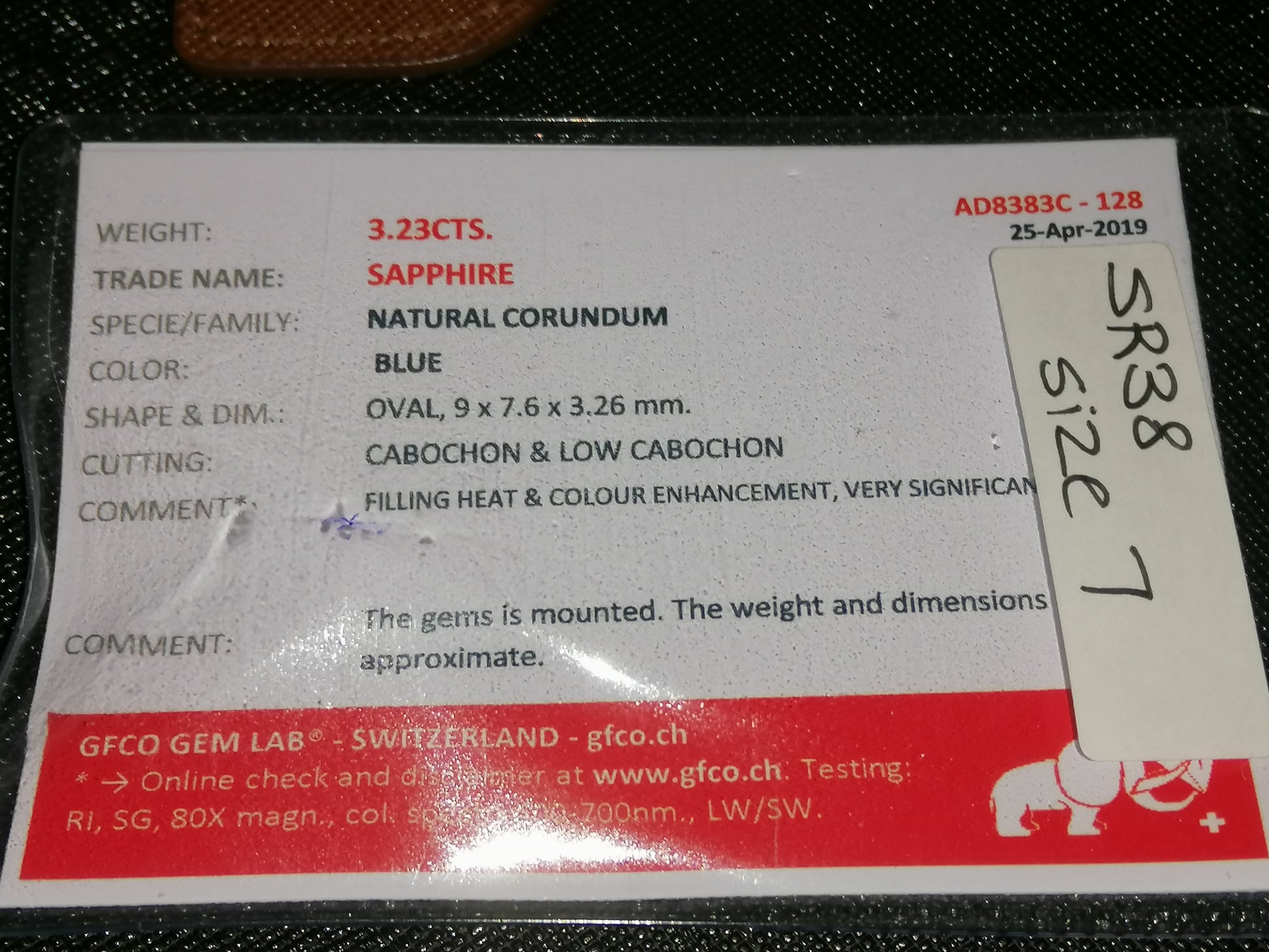 Natural Swiss Lab Certified Sapphire (SIZE 7) SR38